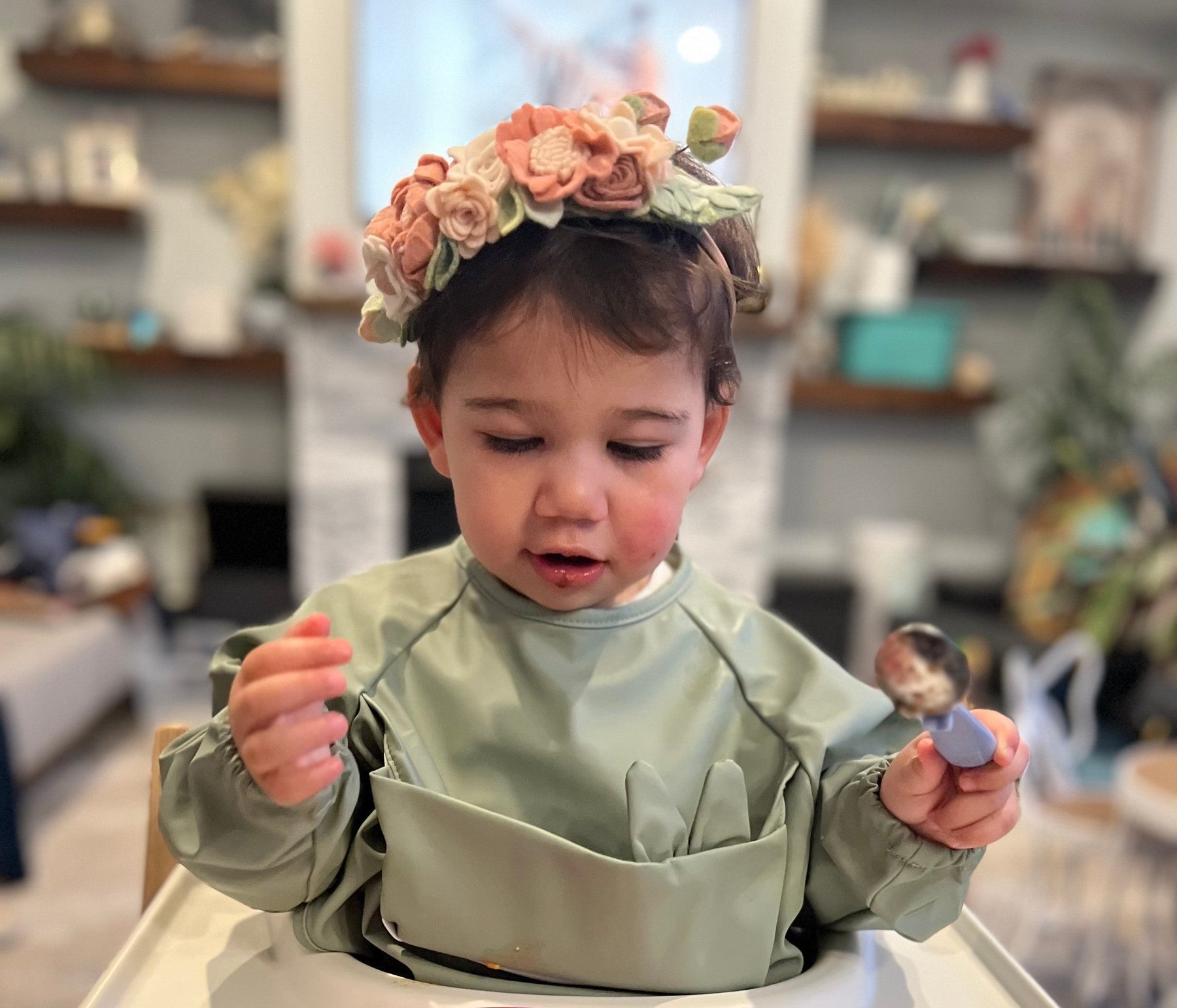 Duo High Pocket Long Sleeve Waterproof Bib – toddler feeding smock – activity smock – painting smock – craft apron – sensory play smock – BLW bib – daycare essential – eco-friendly Canadian baby brand – parenting hacks – first time mom must-have